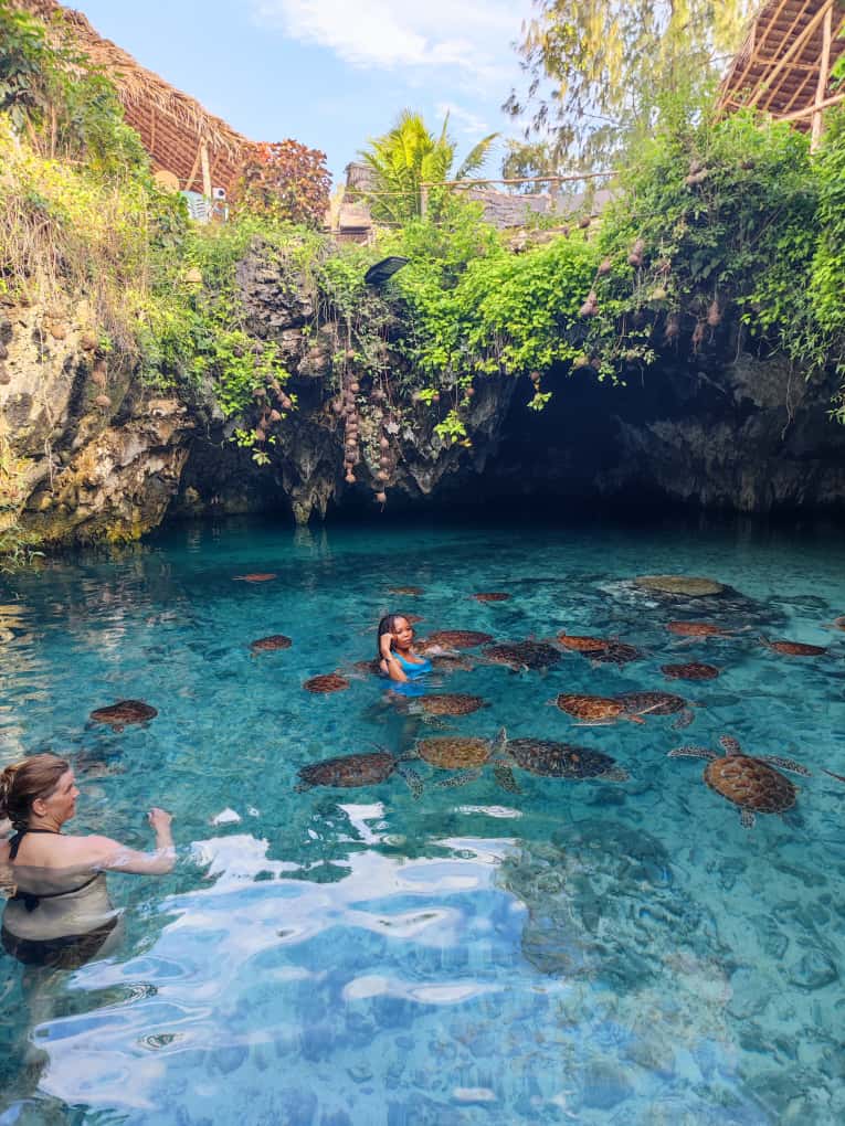 In the north of Zanzibar, you can find one of the natural tidal lagoon formed by coral rocks home to rescued sea turtles – the Baraka Natural Aquarium – which buys the turtles, caught by fishermen and after rehabilitation are released back to the fresh ocean water in the lagoon. Visitors can swim with and feed them seaweed under supervision. Snorkeling is also possible to watch them in their natural environment.
