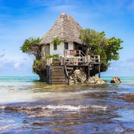 The Rock Restaurant Experience is a must-visit place in Zanzibar – described as “world-famous, known for its iconic location, fabulous food – as fresh as possible from the ocean and the farms – and character. Inspired by natural resources, a strong twist of Zanzibar, and mountains of Italian love – an experience for all your senses – is a restaurant on a rock in the ocean”, which rises a short distant from the shore of the beautiful Michamvi Pingwe Beach on Zanzibar’s south east coast. The restaurant is reached off the beach on foot at low tide or by boat at high tide, and guests can if they wish wade out.